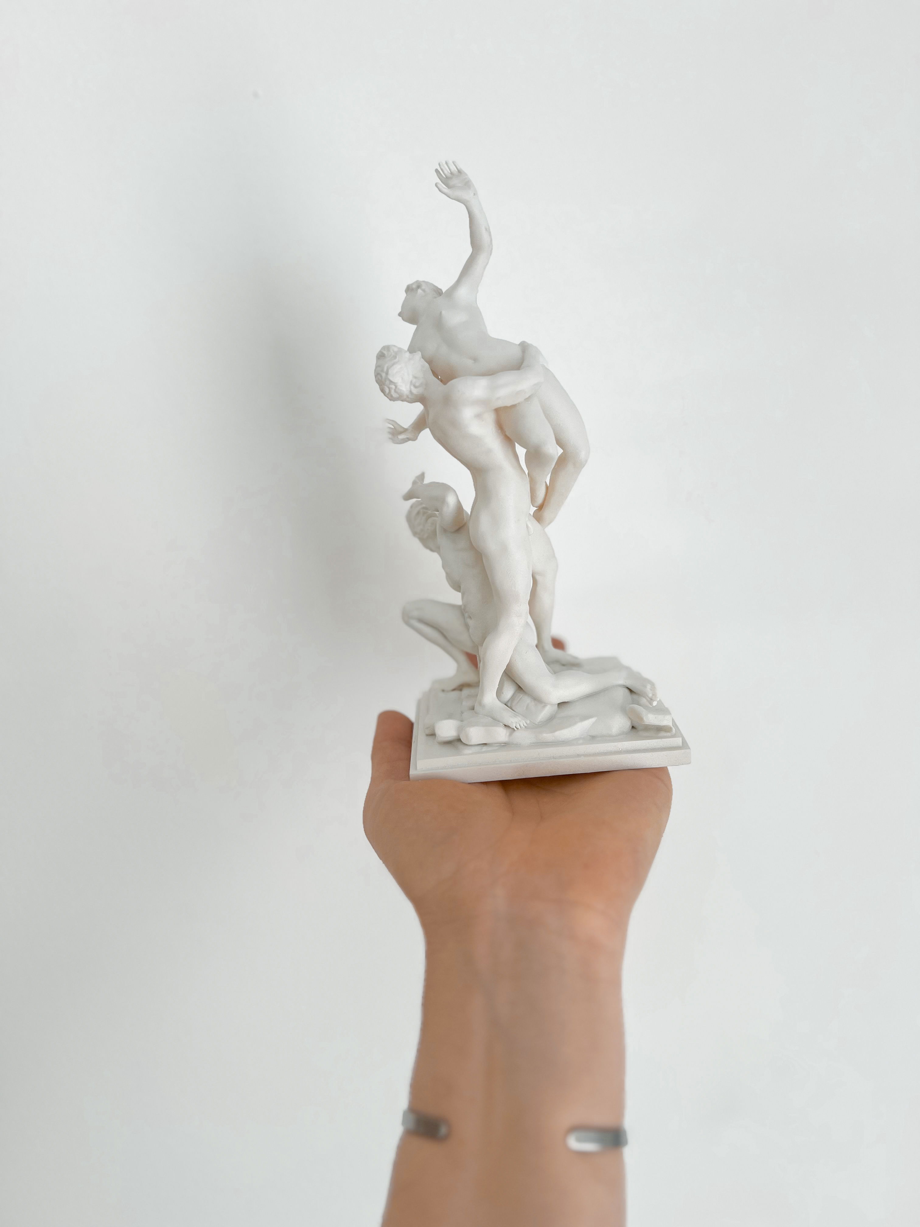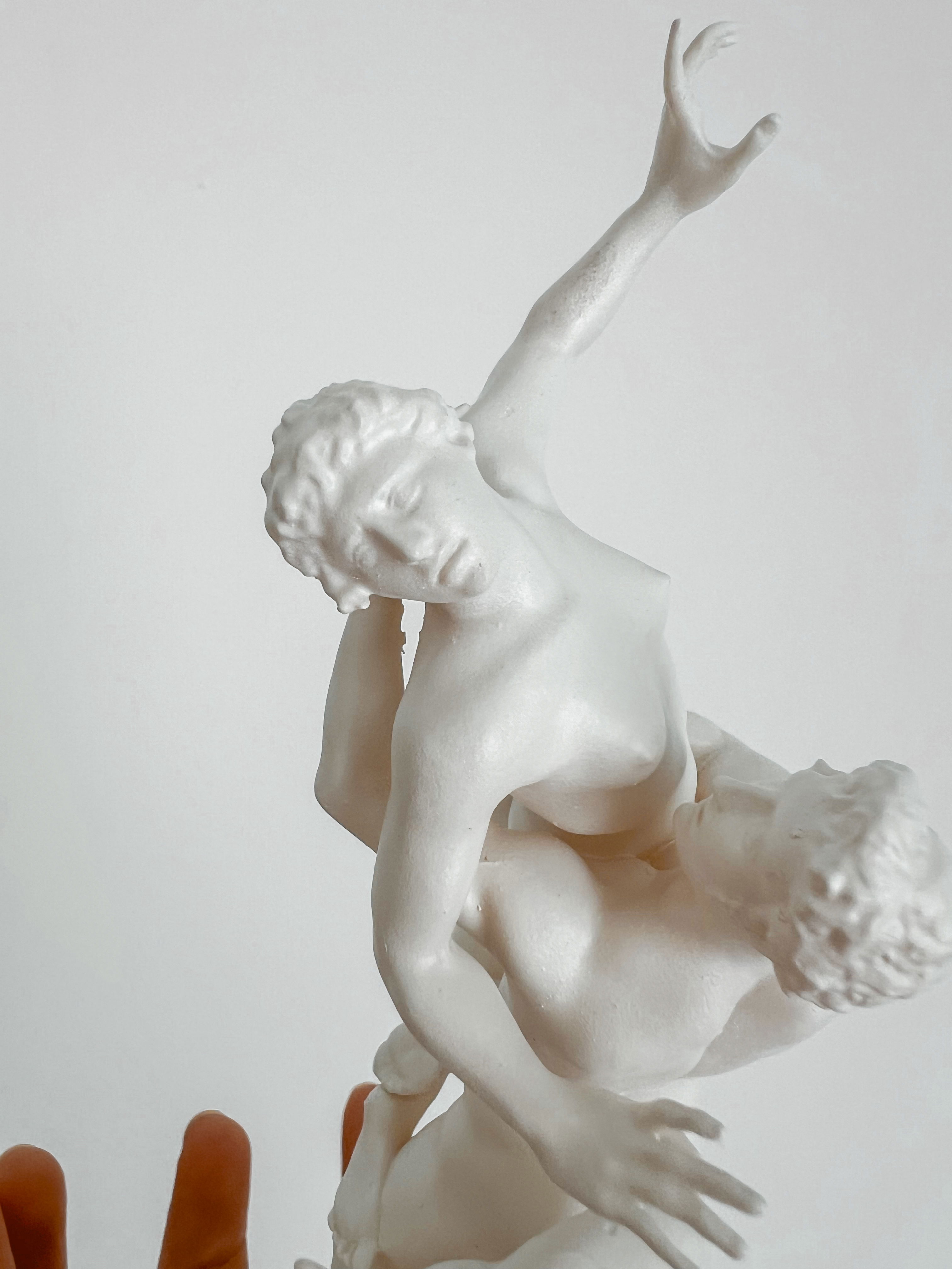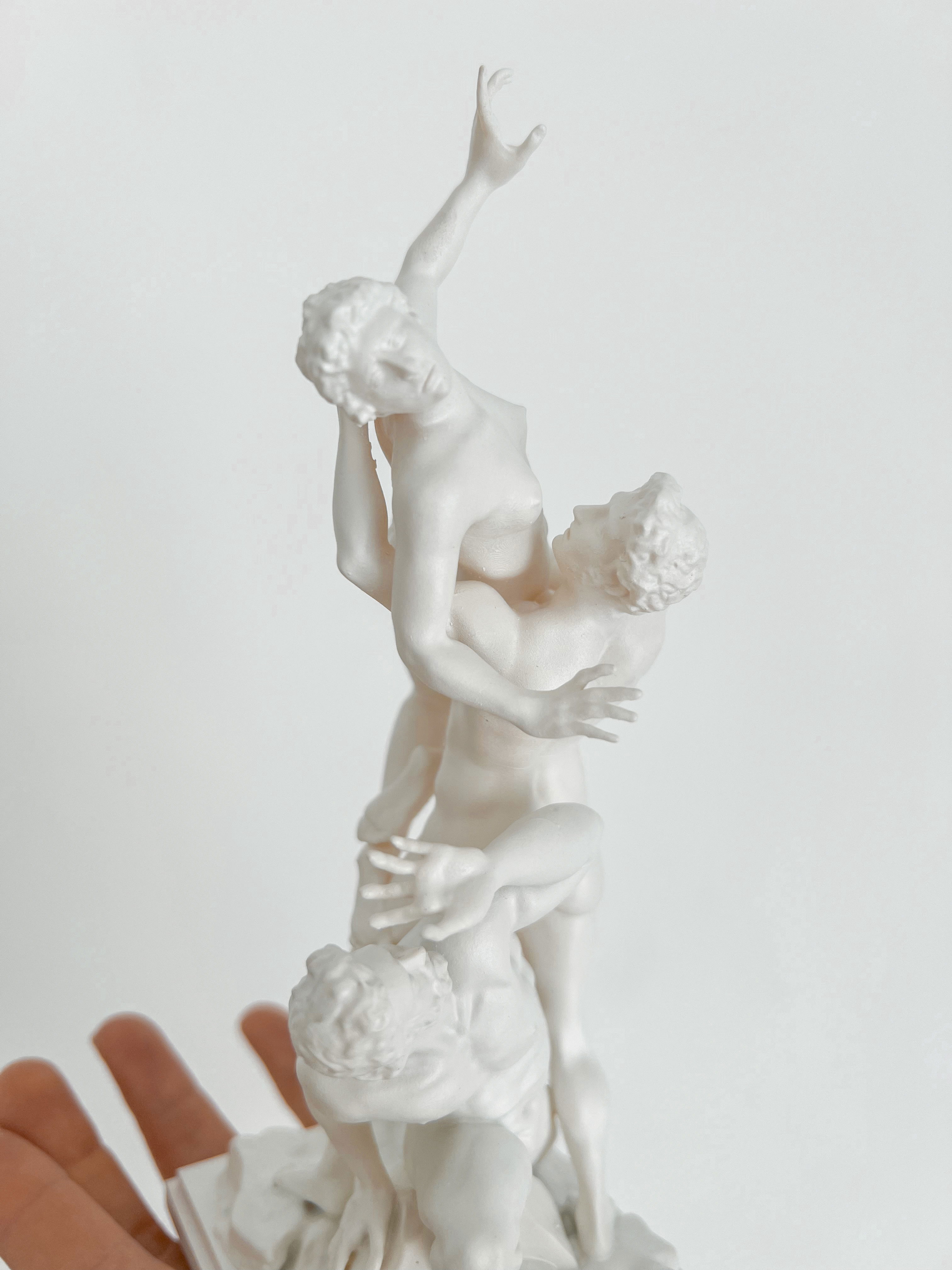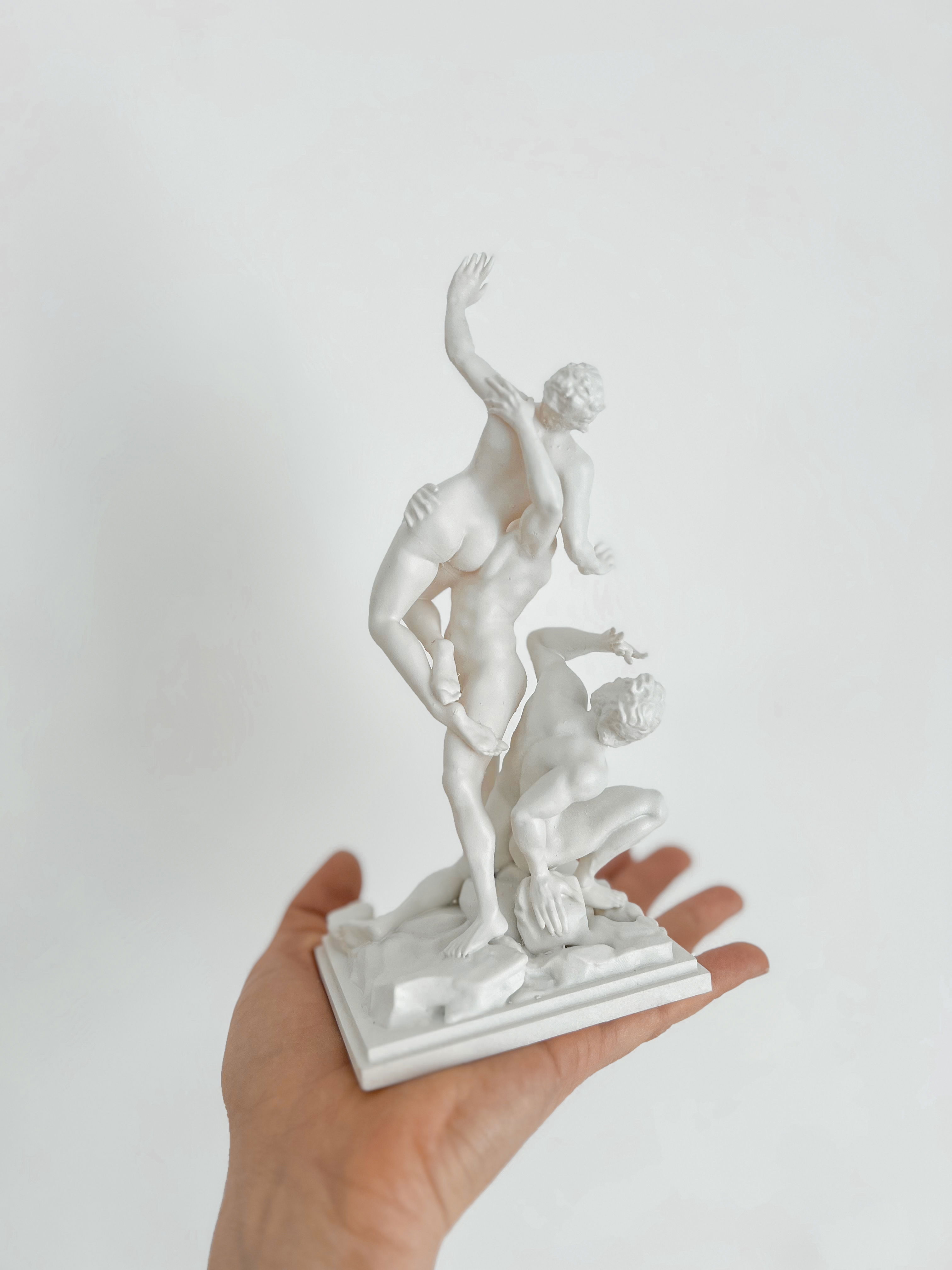 Cada pieza se imprime en 3D con resina UV, logrando una definición impecable en los detalles. Luego, la rellenamos para darle peso y estabilidad. Finalmente, la pintamos con aerosol para obtener un acabado mate que recuerda al concreto, como en nuestra colección general.