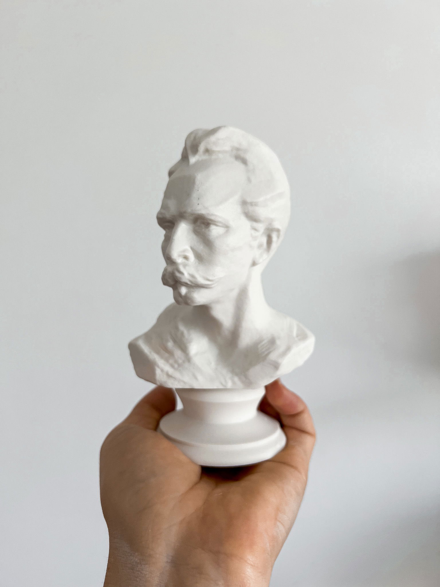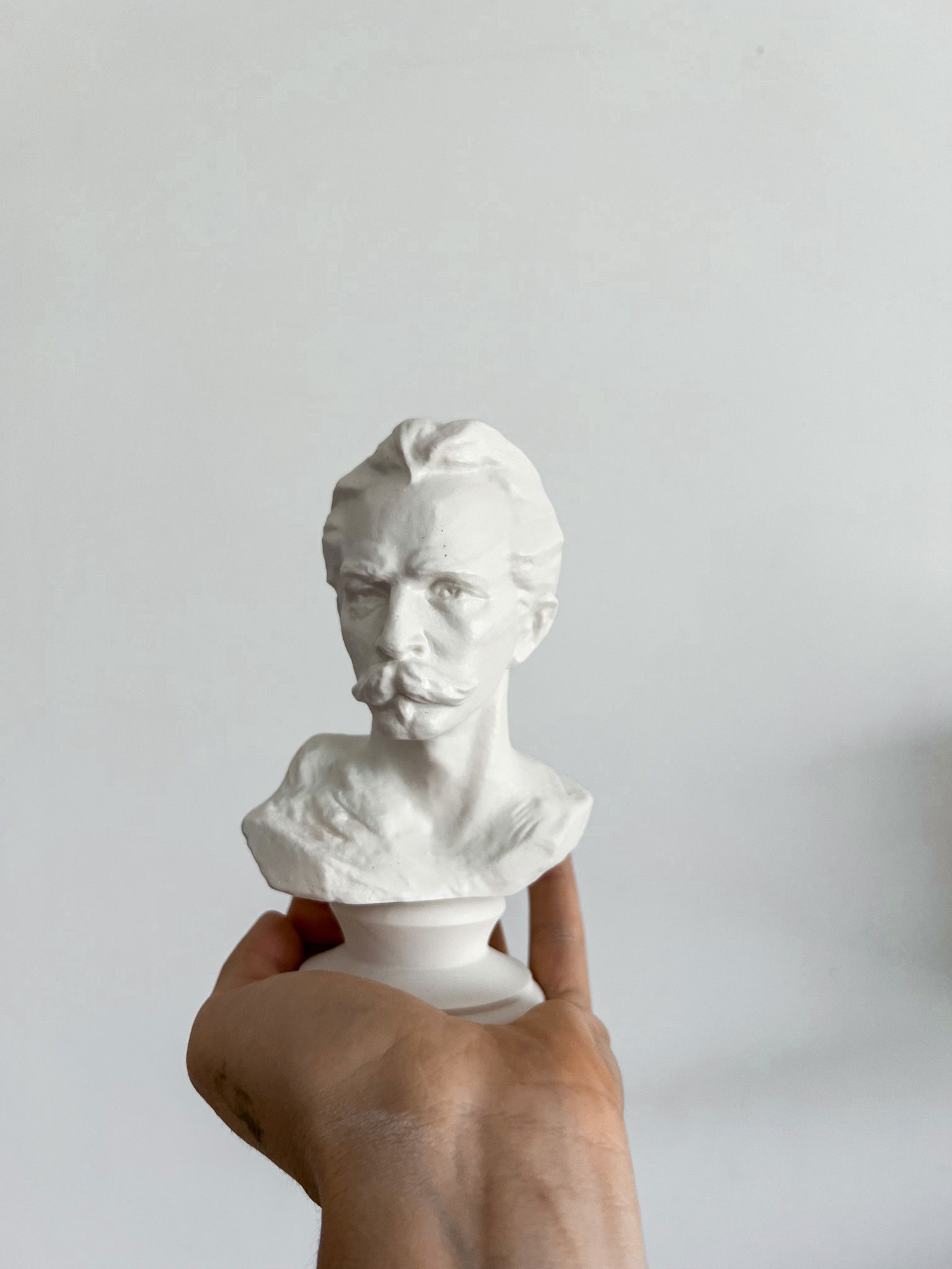 Cada pieza se imprime en 3D con resina UV, logrando una definición impecable en los detalles. Luego, la rellenamos para darle peso y estabilidad. Finalmente, la pintamos con aerosol para obtener un acabado mate que recuerda al concreto, como en nuestra colección general.